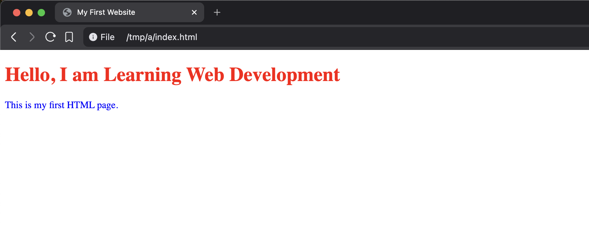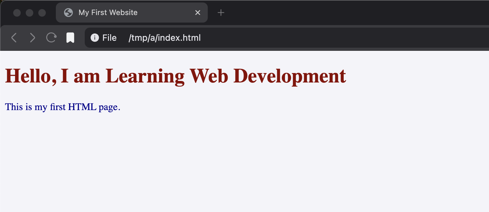 <h1>Hello, I am Learning Web Development</h1>