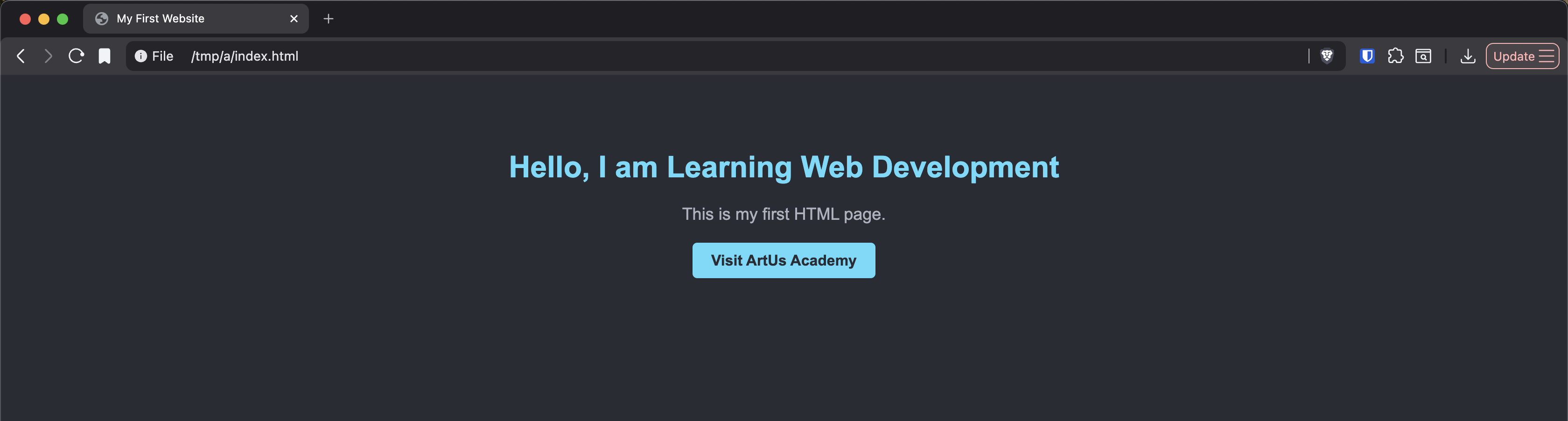To make things more exciting for our final example, let's create a simple webpage where we add a clickable link styled as a button leading back to the ArtUs Academy homepage!